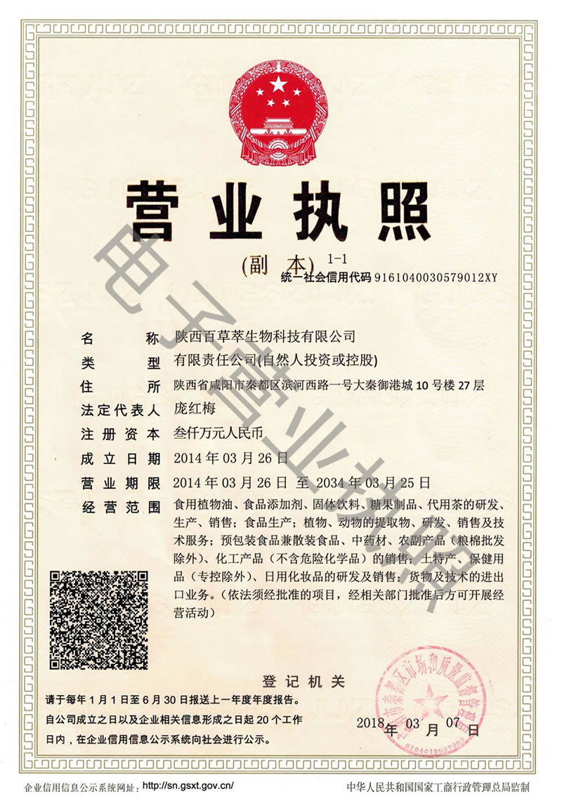 陜西百草萃生物科技有限公司,位于陜西省咸陽(yáng)市秦都區(qū)濱河西路1號(hào)大秦御港城,公司成立于1996年,主要從事天然植物種植、研發(fā)、生產(chǎn)、加工、銷(xiāo)售為一體的高科技企業(yè)。主營(yíng)醫(yī)藥原料、保健品原料、化妝品原料,精細(xì)化工原料。公司致力于人類(lèi)健康保護(hù)事業(yè)“ 以科技為動(dòng)力,以質(zhì)量求生存” 的本質(zhì),依托陜西高新科技技術(shù)人才和科研優(yōu)勢(shì),已形成多學(xué)科、全方位、高層次的技術(shù)管理精英團(tuán)隊(duì)。充分利用秦巴山區(qū)的天然藥物資源,歷經(jīng)多年發(fā)展為打造百草萃生物品牌奠定了基礎(chǔ)。